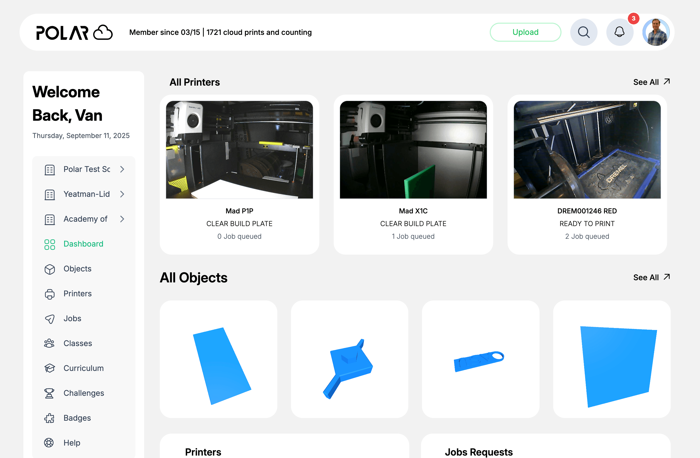 Cincinnati, OH, September 17, 2025 - Polar3D, creator of the Polar Cloud platform used in thousands of schools worldwide, and Bambu Lab, a global leader in high-performance 3D printing, today announced a new integration that makes it possible for schools and districts to connect Bambu printers directly to the Polar Cloud. This collaboration gives educators the ability to manage fleets of printers, schedule jobs, and monitor activity from anywhere while maintaining the security and compliance standards schools require.