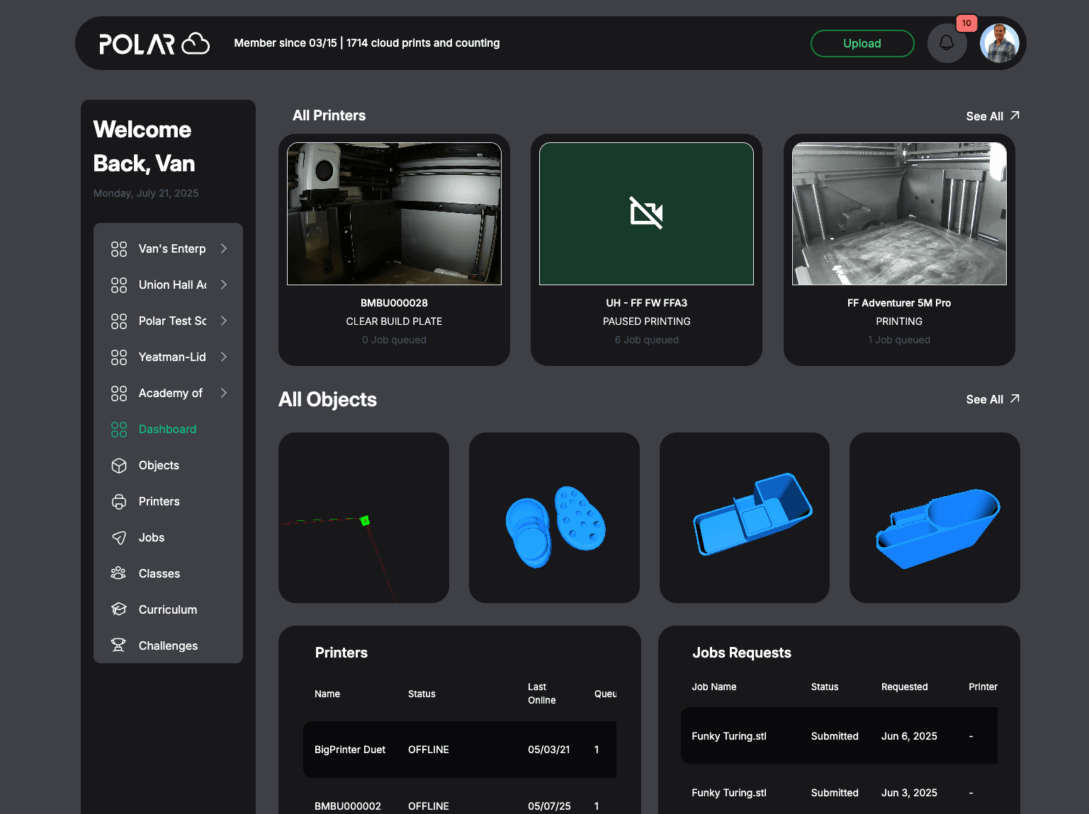 Since launching in 2017, the Polar Cloud has empowered thousands of students, educators, and makers to connect, control, and collaborate on 3D printing from anywhere in the world. Today, weâre thrilled to unveil the biggest UI update in Polar Cloud historyâa complete redesign that makes your experience faster, clearer, and more powerful than ever before.